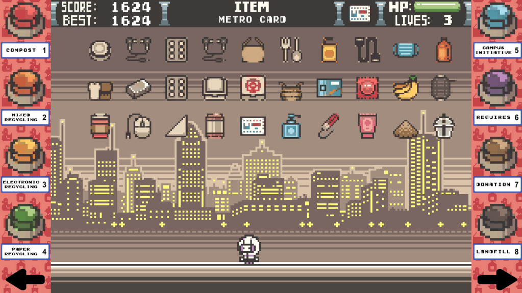 Waste Invaders was my original project for Concordia’s Sustainability Ambassador Program. The arcade style game is meant to educate people how to properly sort their waste at Concordia in a fun and interactive way! I received over $6,000 in grants for the project to help hire a team with its development. The game also collects data based on how people score to better inform research initiatives surrounding waste management.